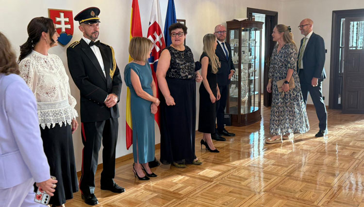 El embajador de Eslovaquia resaltó que “un tema fundamental en la actualidad es la presencia militar española en mi país. Me honra destacar que Eslovaquia es ahora el país con mayor número de soldados españoles desplegados en todo el mundo. Mis mejores felicitaciones a la Brigada Multinacional de la OTAN, liderada por España, que en junio pasado recibió la visita de Su Majestad el Rey de España, Felipe VI, quien subrayó que el despliegue del contingente español en Eslovaquia se realiza en el marco de los esfuerzos de España para contribuir a la protección del flanco oeste de la OTAN frente a la amenaza rusa”.