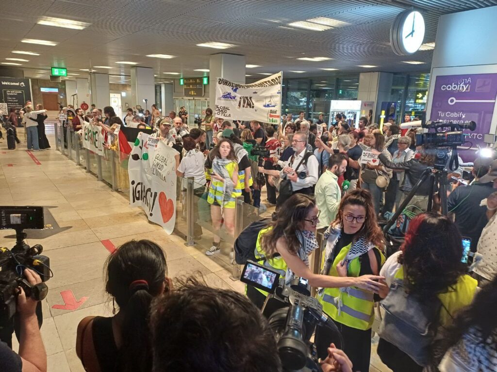 Recibimiento en Barajas a los miembros de la Flotilla. / Foto: CGT X
