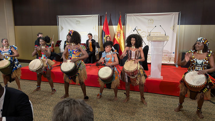 Tras un almuerzo ofrecido para esta conmemoración al Cuerpo Diplomático y a la comunidad angoleña en España, la Embajada celebró durante toda la tarde el Día de Angola en la madrileña Plaza de Toros de Las Ventas, con hizomba (género musical y un baile de pareja que se originó en Angola en la década de 1970), gastronomía y carnavales angoleños y música en directo con artistas como Gabriel Tchimea, As Gingas do Maculusso, Daniel Nascimento, Noite e Día, Sandra Cordeiro, Dj Malvado, Tony do Fumo Júnior, Hláudio Hoshai y Antonica. Todo un festival de cultura angoleña bajo el lema “Angola es ritmo, naturaleza y corazón. Un país que no sólo se visita, se vive”.