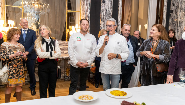El pasado miércoles 12 de noviembre, el embajador de Italia, Giuseppe Buccino Grimaldi, acogió en su residencia, en el sugerente marco del Palacio de Amboage, el evento Sabores en diálogo: la dieta mediterránea como patrimonio compartido entre Italia y España, realizado en colaboración con la Real Academia de Gastronomía y Coldiretti en el marco de la X edición de la Semana de la Cocina Italiana en el Mundo.