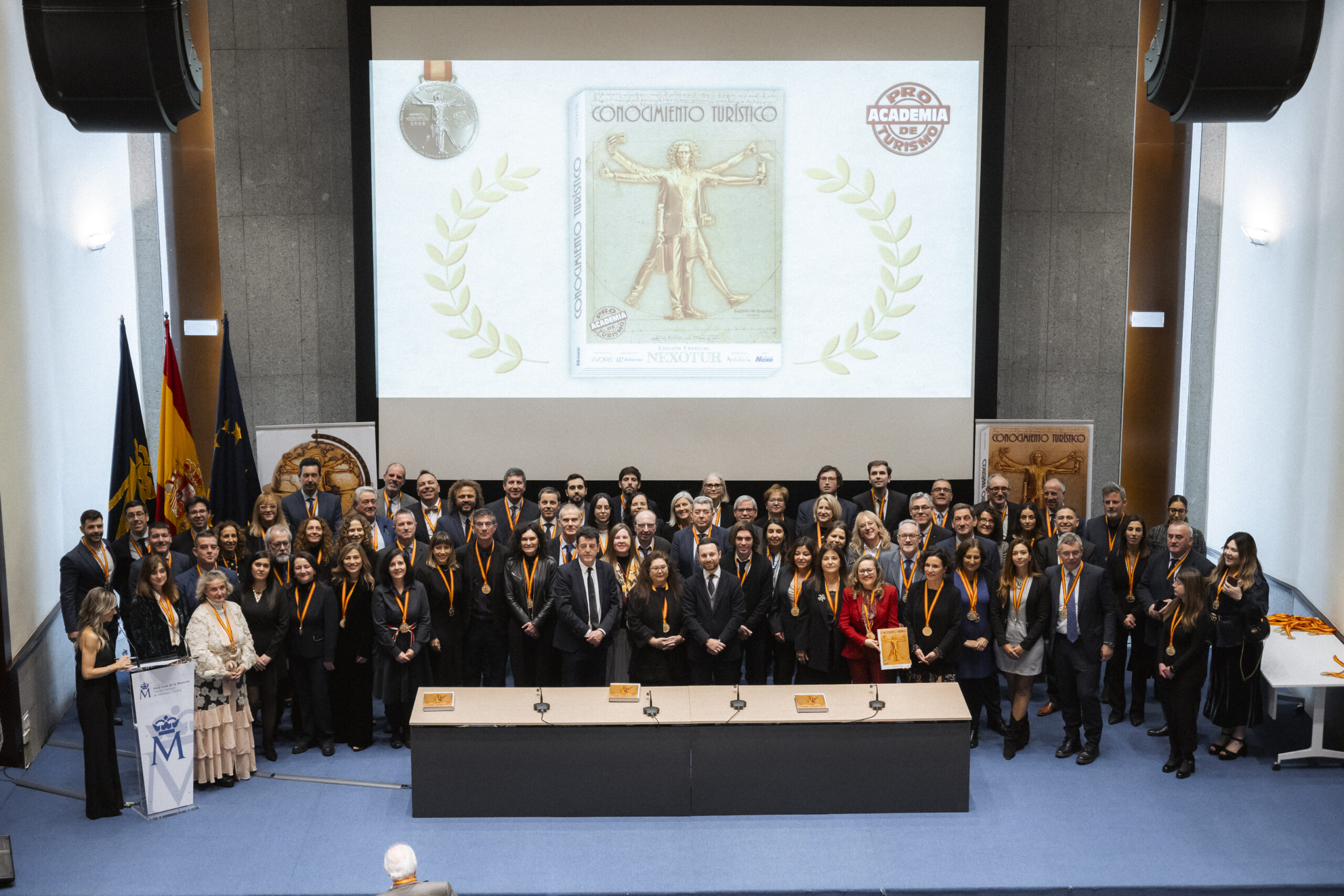 Los premiados se dirigieron al escenario del gran Auditorio de la Real Casa de la Moneda, donde el nuevo CEO del Grupo NEXO, Yago González, y el director de NEXOTUR, Eugenio de Quesada, les impusieron la Medalla del Conocimiento Turístico. Esta distinción, diseñada especialmente para la ocasión, representa el símbolo del turista concebido a partir del hombre de Vitruvio de Leonardo da Vinci, con las dos tipologías del Turismo: la vacacional y la profesional.