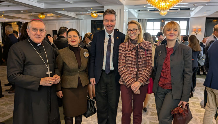 De izquierda a derecha, el Nuncio de Su Santidad, y los embajadores de Albania, Hungría, Alemania y Bosnia y Herzegvina.