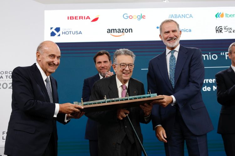 The King with the "fathers of the Constitution" Miguel Herrero and Miquel Roca after the award ceremony. / Photo: Casa Real