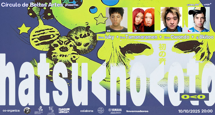 hatsu no oto is co-organized by the Círculo de Bellas Artes and Fundación Japón, Madrid, with the participation of Lecluf and the collaboration of Yamaha, The Social Hub and Los Invernaderos. Yuki López and Marco Costa, two young music curators, have been responsible for devising hatsu no oto and selecting the Japanese and Spanish artists.
