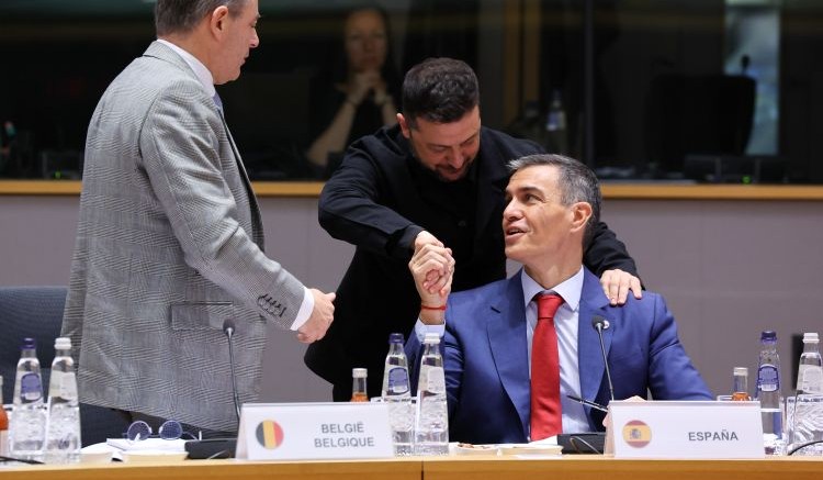 Zelensky greets Sánchez at the European Council. / Photo: EU