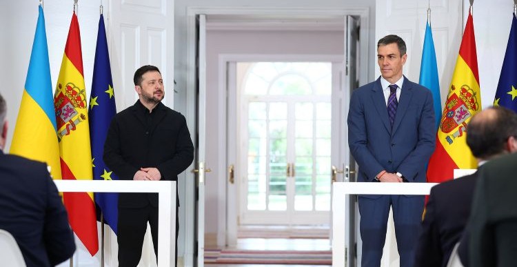 Zelenskyy and Sánchez during the press conference. / Photo: Pool Moncloa / Fernando Calvo