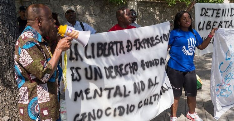 Protest against the persecution of Bubi culture in front of the Embassy of Equatorial Guinea in Madrid. / Photo: Calvin Smith - www.flickr.com