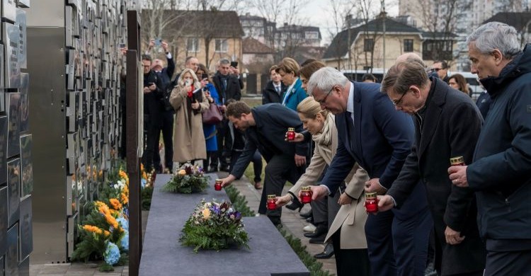 Floral tribute to the victims of the Bucha massacre. / Photo: EEAS